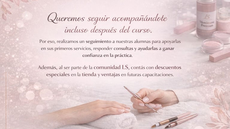 Formación profesional en manicura y venta de insumos seleccionados para manicuristas exigentes.